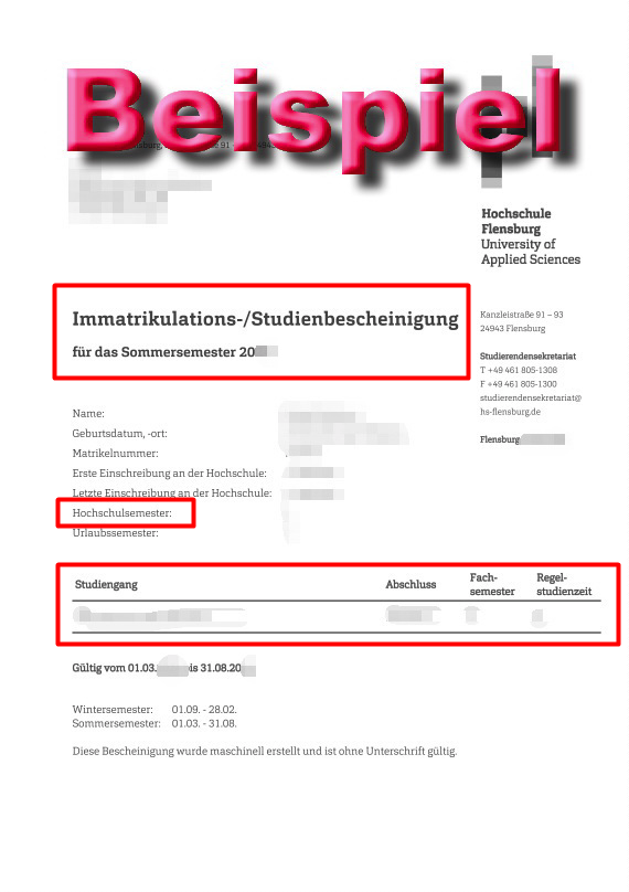 gültig ist hier nur die offizielle Immatrikulations-/Studienbescheinigung der Hochschule Flensburg