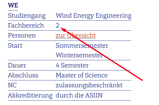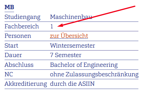 jeder Studiengang ist einem Fachbereich (1-4) zugeordnet