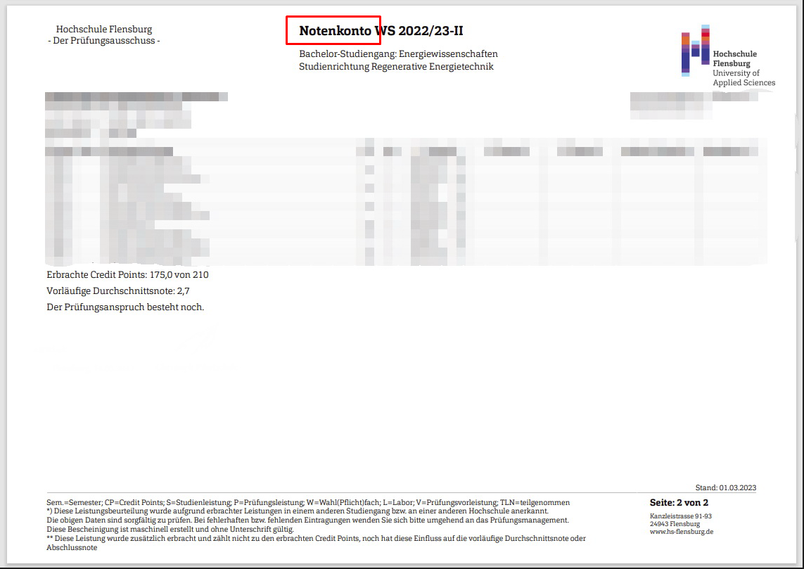 verwendbar für eine Bewerbung für das Deutschlandstipendium ist nur das Notenkonto