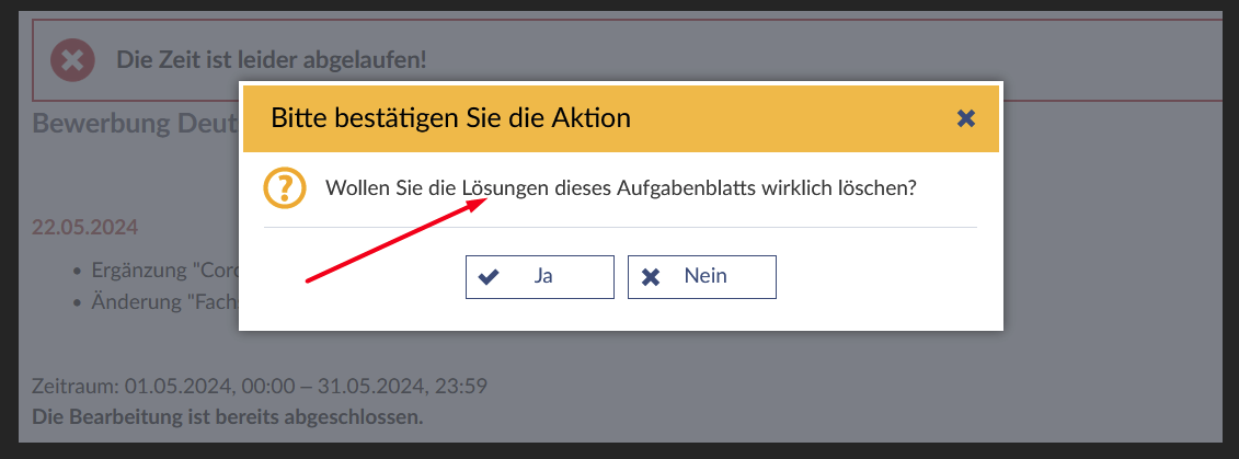 diese Meldung erhalten Sie dann, wenn Sie auf "Arbeitsblatt abgeben" gedrückt hatten