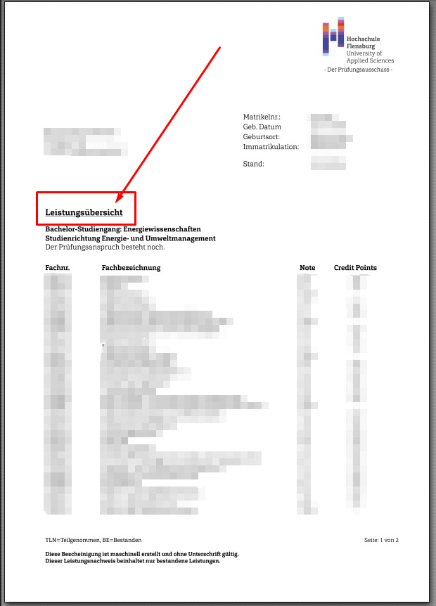 verwendbar für eine Bewerbung für das Deutschlandstipendium ist nur das Notenkonto